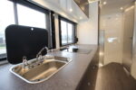 The RR3 Sport Line alows direct acces from the cabin to the living. The living contains a sleeping accommodation above the cabe, a shower, toilet and a well equipped kitchen, this horse truck is perfect for multi-day events.